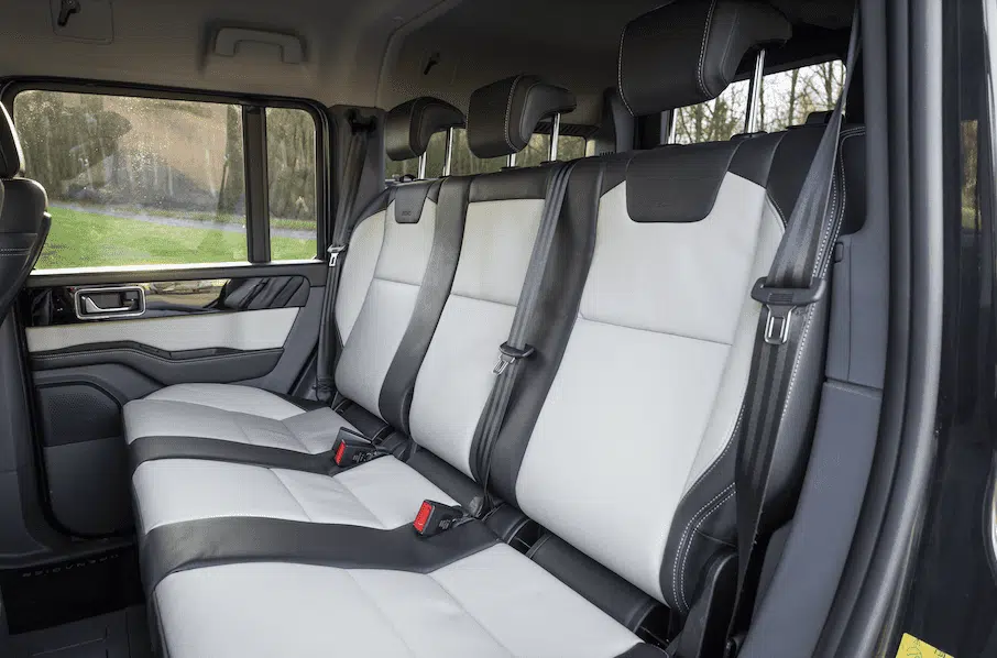 Designed primarily to carry loans, the Grenadier Utility Wagon has two seats, and is certified as a commercial vehicle.