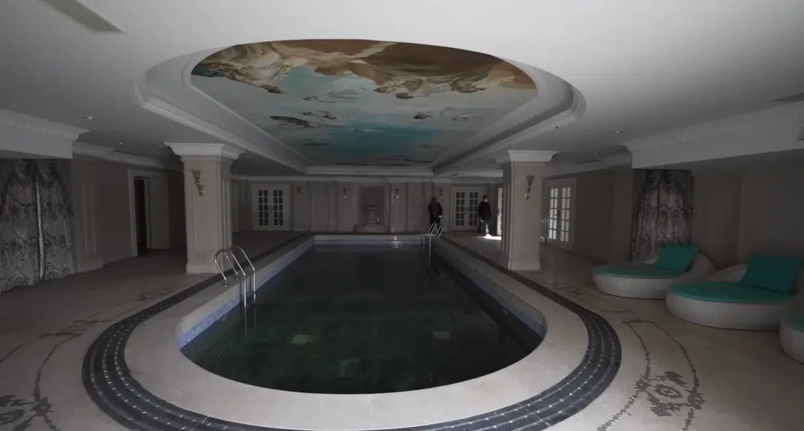 The team discovered a gym, a snooker room, and an indoor swimming pool with a gorgeous painted ceiling, including intricate frescoes and a stylish mosaic floor.