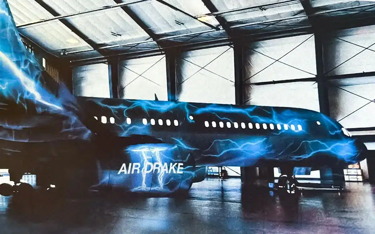 The plane was actually a gift from a Canadian aerospace company, and he recently had it repainted with a new livery, which he now calls ‘Air Drake 2′.
